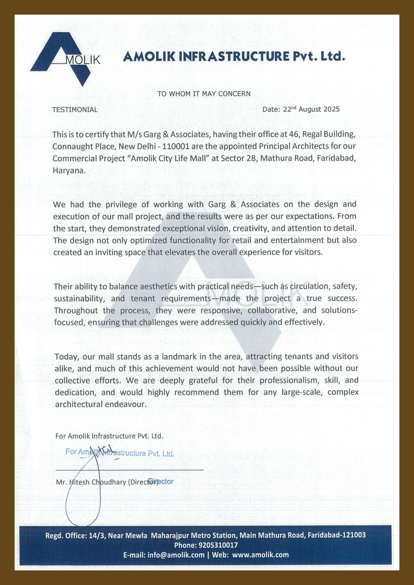 Garg & Associates is a leading architectural firm based in New Delhi, delivering innovative design and planning solutions across India. With a portfolio spanning housing, commercial, institutional, and urban development projects in multiple cities, the firm blends creativity with functionality to create sustainable spaces.